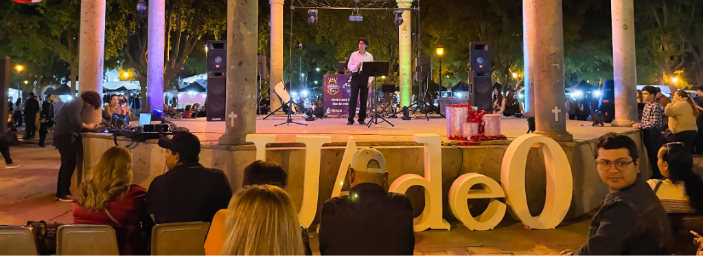 La actividad, que inició a las 6:00 de la tarde y concluyó a las 7:30 p.m., marcó la primera ocasión en que este formato se presenta en dicho espacio público, ya que anteriormente se había llevado a cabo dentro de la institución bajo el nombre “Enamorarte”, evento que también fue realizado este año. En esta edición, la velada estuvo a cargo de los estudiantes del taller de música universitario, dirigidos por el profesor Raymundo Bobadilla León, quienes ofrecieron interpretaciones que reflejaron disciplina, sensibilidad y pasión artística. Además, alumnos de la Licenciatura en Ciencias de la Comunicación participaron activamente en la conducción del programa, sumándose a esta iniciativa que busca proyectar el talento universitario hacia la ciudadanía, fortaleciendo el vínculo entre la institución y la comunidad.